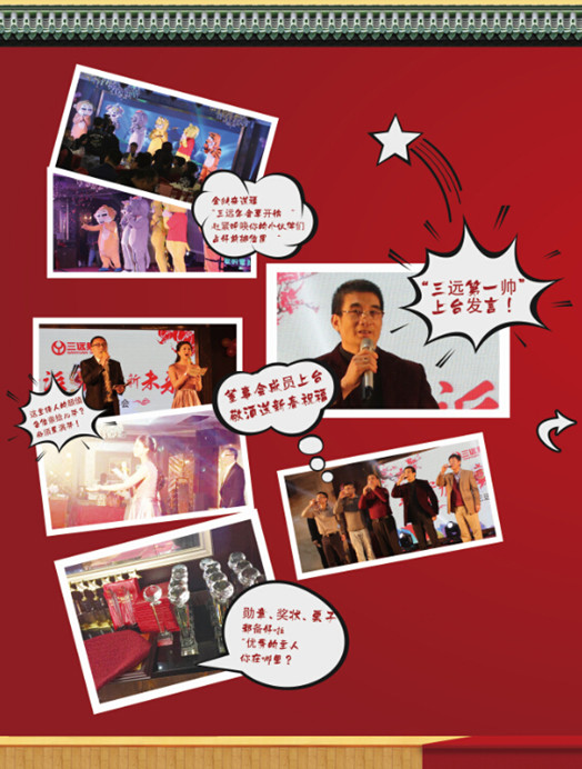 年終歲末恰逢立春時(shí)節(jié),2月4日,“三遠(yuǎn)實(shí)力派 共筑新未來”2016新春年會(huì)熱鬧上演!當(dāng)晚,工程管理中心以熱鬧歌曲開場(chǎng)相邀,三遠(yuǎn)的實(shí)力派們歡聚一堂。“三遠(yuǎn)第一帥”吳遠(yuǎn)康董事長(zhǎng)上臺(tái)發(fā)言,回首舊歲,展望新朝;行政管理中心總監(jiān)謝喜萍女士主持召開了三遠(yuǎn)2015年度頒獎(jiǎng)儀式,褒獎(jiǎng)了2015年度表現(xiàn)突出的優(yōu)秀管理者、優(yōu)秀部門、優(yōu)秀員工等。頒獎(jiǎng)儀式后,晚會(huì)表演正式拉開序幕,各中心紛紛獻(xiàn)上精心編排的精彩節(jié)目,現(xiàn)場(chǎng)最令人牽掛的莫過于抽獎(jiǎng)環(huán)節(jié),尤其是當(dāng)晚董事會(huì)成員還通過微信群紅包的互動(dòng)形式給同事們發(fā)送了許多“實(shí)誠(chéng)”的祝福!(撒花)