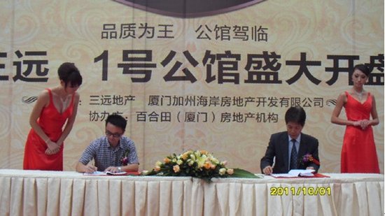 在開盤慶典上,三遠·1號公館與國際房地產顧問“五大行”之一的戴德梁行進行了物業管理的簽約儀式。戴德梁行負責人表示,將為三遠·1號公館的業主們提供最專業的高端服務品質,將物業管家服務體系,物業的職業理念和職責范圍,按照專業禮儀進行嚴格的規范,并努力塑造行業標準,以期傳襲公館家族的榮耀血統與優良家風,并以此作為家族的標簽,流傳萬代。